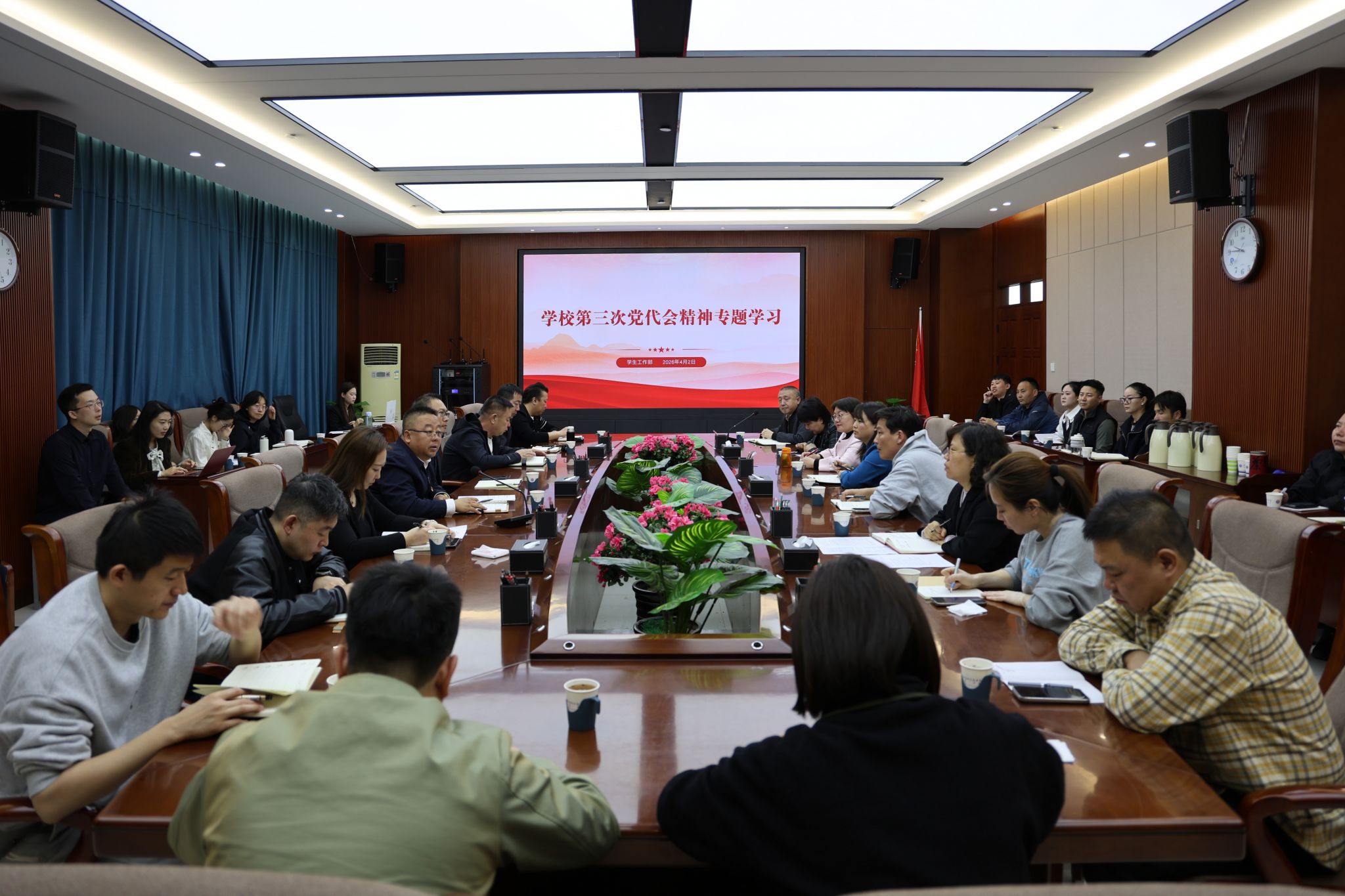 • 4月2日,学生工作部组织学校全体辅导员在综合楼十一楼会议室召开专题学习会议,集中传达学习学校第三次党代会精神。会议由学生工作部部长常喜主持。会议传达学习了学校第三次党代会所作主题为《扎根北疆 铸魂育人——奋力谱写新时代应用型民族院校高质量发展新篇章》的报告。会议指出,第三次党代会是学校在“十五五”规划开局起步、全面深化教育综合改革的关键节点召开的一次重要会议,大会提出的“转型强基、重点突破、跨越发...