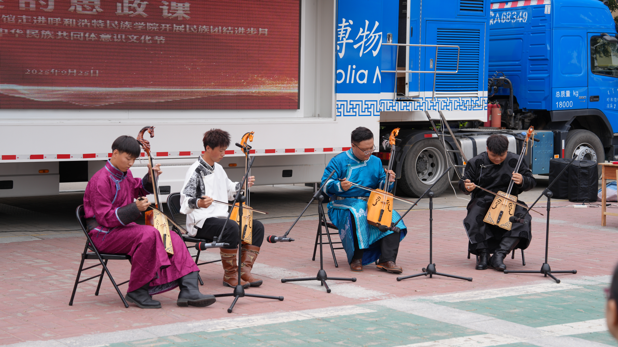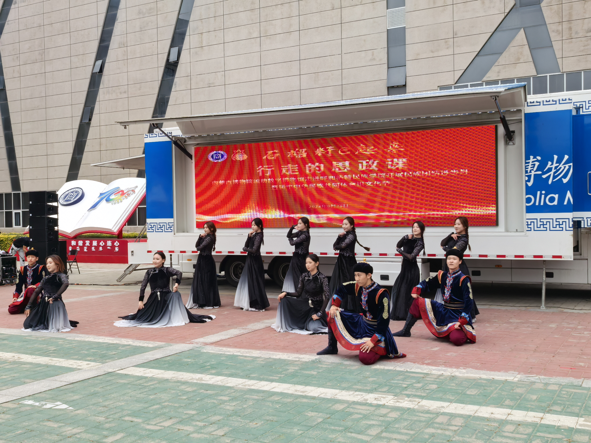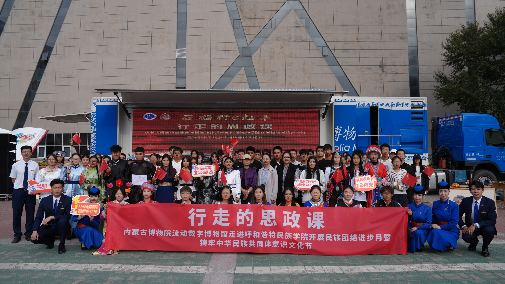 为进一步深化民族团结进步教育,以有形、有感、有效的方式铸牢中华民族共同体意识,9月25日下午,学校党委统战部、团委联合内蒙古自治区民族事务委员会地方语言文字研究应用中心(内蒙古民族团结杂志社)、内蒙古博物院,在都林广场共同举办“内蒙古博物院流动数字博物馆进校园暨校园铸牢中华民族共同体意识文化节”专场活动。活动依托数字展车、中华文化体验、非遗展示、知识竞赛等形式,为师生打造了一堂沉浸式“行走的思政课”。内蒙古自治区民族事务委员会地方语言文字研究应用中心(内蒙古民族团结杂志社)主任阿拉坦巴根那,内蒙古博物院社会教育部副部长石瑛,学校党委副书记格根哈斯,党委委员、副校长双虎出席活动。奔腾融媒、新闻天天看等媒体栏目进行现场报道。