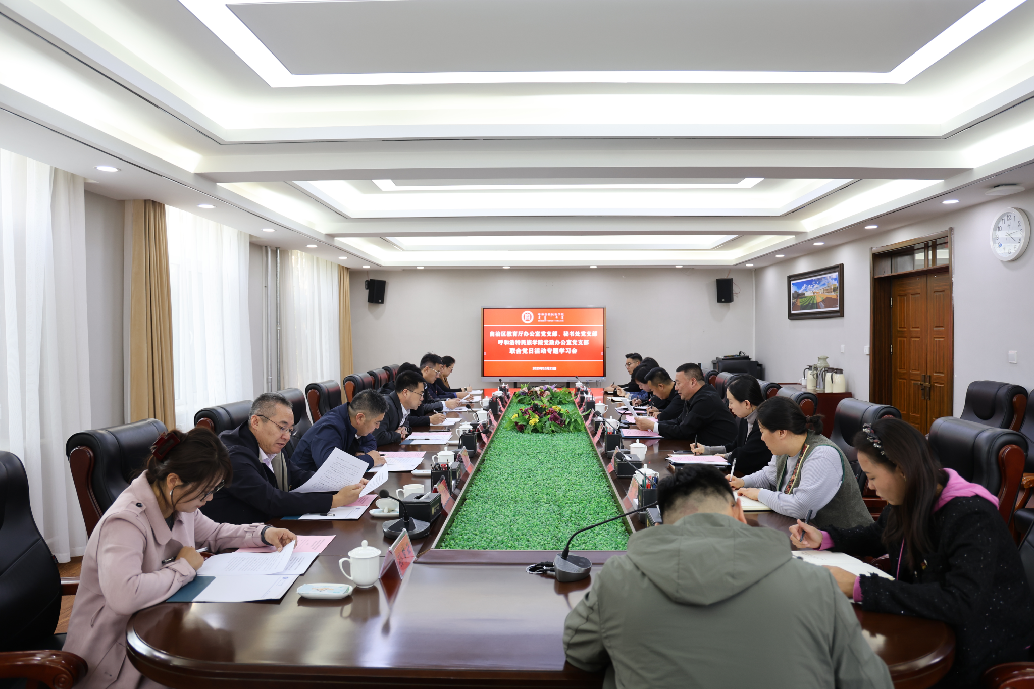 10月21日下午,自治区教育厅办公室党支部、秘书处党支部与我校党政办公室党支部联合开展“厅校联动聚合力 共绘团结同心圆”主题党日活动。自治区教育厅办公室主任、党支部书记安永明,秘书处处长、党支部书记姜玉鹏参加党日活动。校党委书记刘九万与教育厅来访领导一行座谈交流,校党委副书记、校长王敏以普通党员身份参加党日活动。