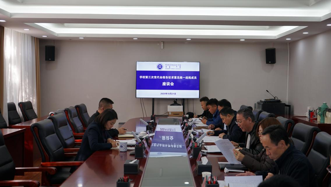 为高质量筹备中国共产党呼和浩特民族学院第三次党员代表大会,充分发扬民主,广泛听取意见,近期,学校党委面向无党派人士代表、民主党派代表、留学归国人员代表,离退休老干部老同志代表,学生代表,高层次人才代表,基层党组织负责人等群体,组织召开5次专题座谈会,充分听取各类代表对党代会工作报告的意见建议。