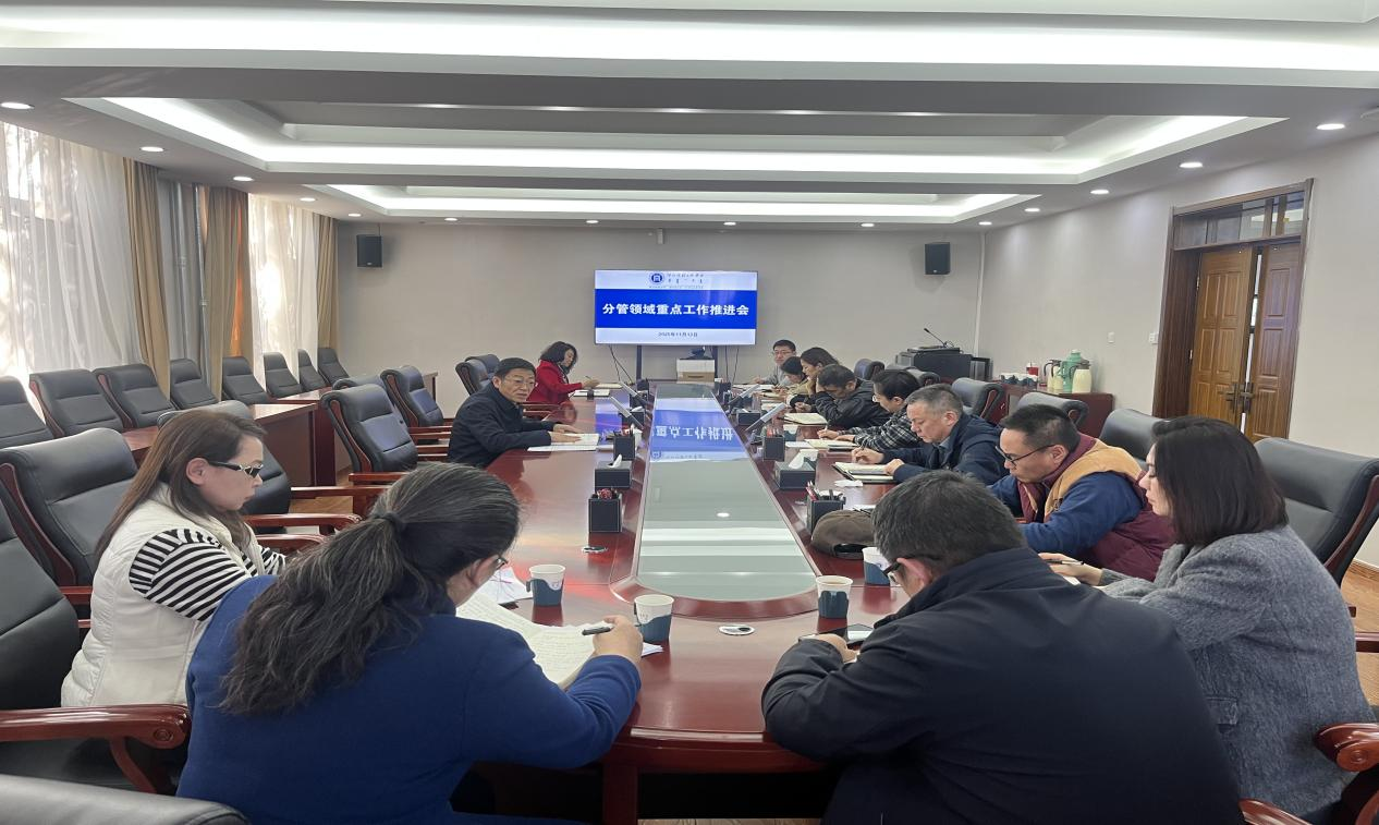 11月13日下午,校党委委员、副校长高喜天在办公楼二楼会议室主持召开分管领域重点工作推进会。研究生院(学科建设办公室)、发展规划处、财务处、国资处、后勤管理处、对外合作与交流中心、信息中心等部门处级干部参加会议。
