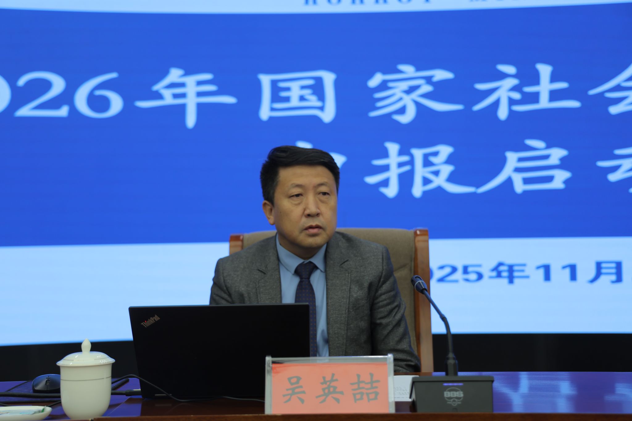 11月21日上午,我校在综合楼12楼会议室召开2026年度国家社会科学基金项目申报启动会。会议特邀教育部“长江学者奖励计划”特聘教授、内蒙古大学吴英喆教授作专题辅导。校党委委员、副校长额尔敦布和主持会议,副高以上职称人员、具有博士学位的教师以及科研处(社科处)全体人员参加了会议。
