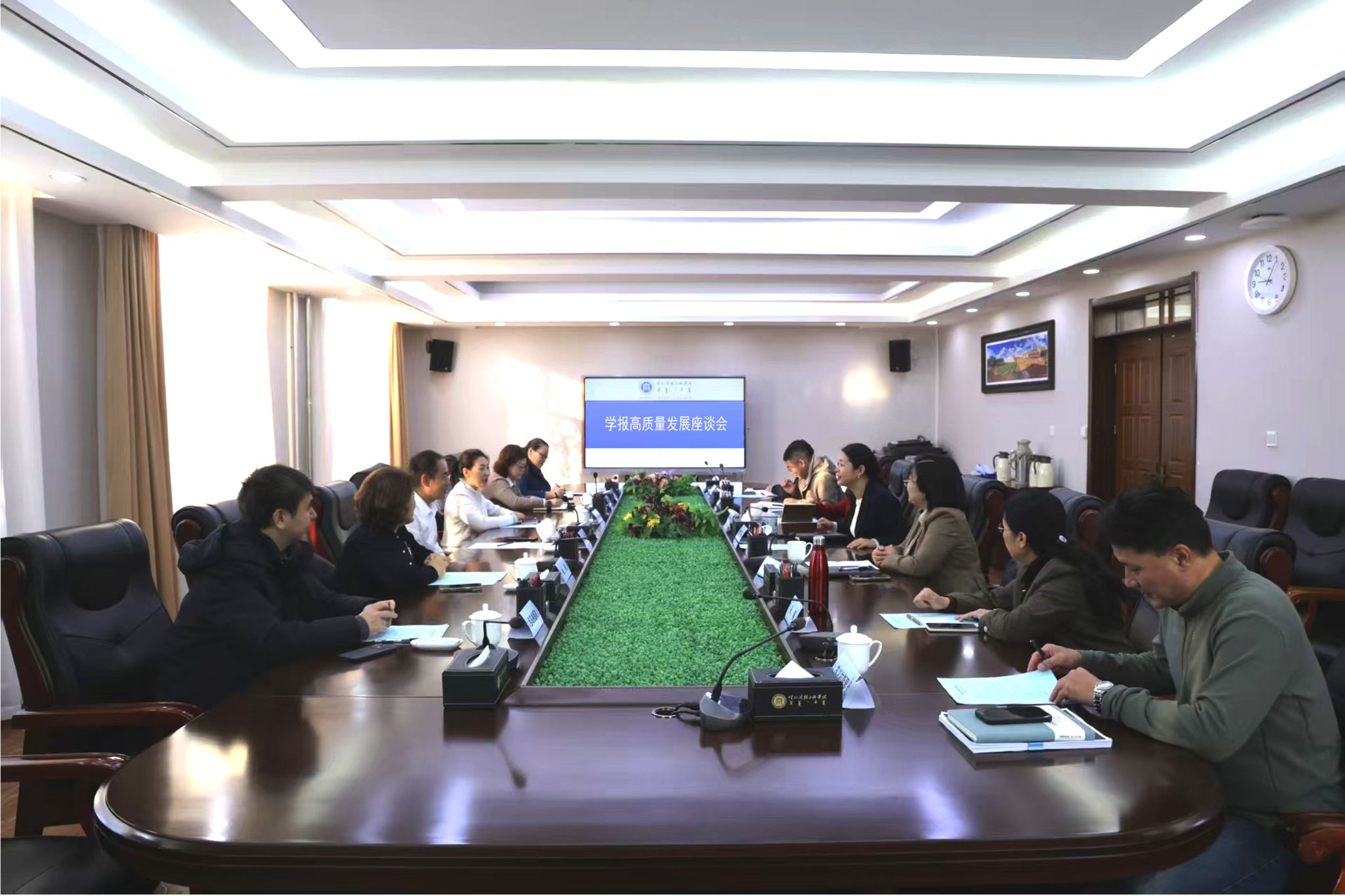 为促进学报转型发展,建强优化学术期刊阵地,11月21日上午,在办公楼第三会议室,学校召开了学报高质量发展座谈会。校党委副书记格根哈斯,内蒙古财经大学学报编辑部主任宋继承教授、内蒙古师范大学学报编辑部主任金良教授、内蒙古自治区社会科学院北疆文化研究所所长王海荣研究员等专家出席座谈会。我校教育学院永春教授、研究生院院长崔凤珍、法学院院长胡春香、计算机与信息技术学院院长包乌格德勒以及学报编辑部全体成员参会。座谈会由学报编辑部主任富涛主持。