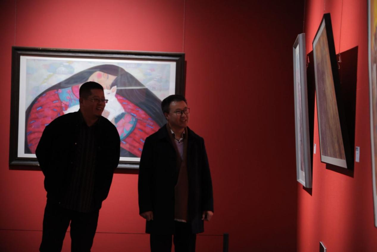自治区文联党组成员、副主席刘国旗,内蒙古美术家协会主席董从民以及我校党委副书记格根哈斯,党委委员、纪委书记、监察专员王冬梅,党委委员、副校长高喜天,党委委员、副校长额尔敦布和出席座谈会开幕式。校党委统战部、教务处等有关职能部门负责人以及美术与设计学院师生代表参加。