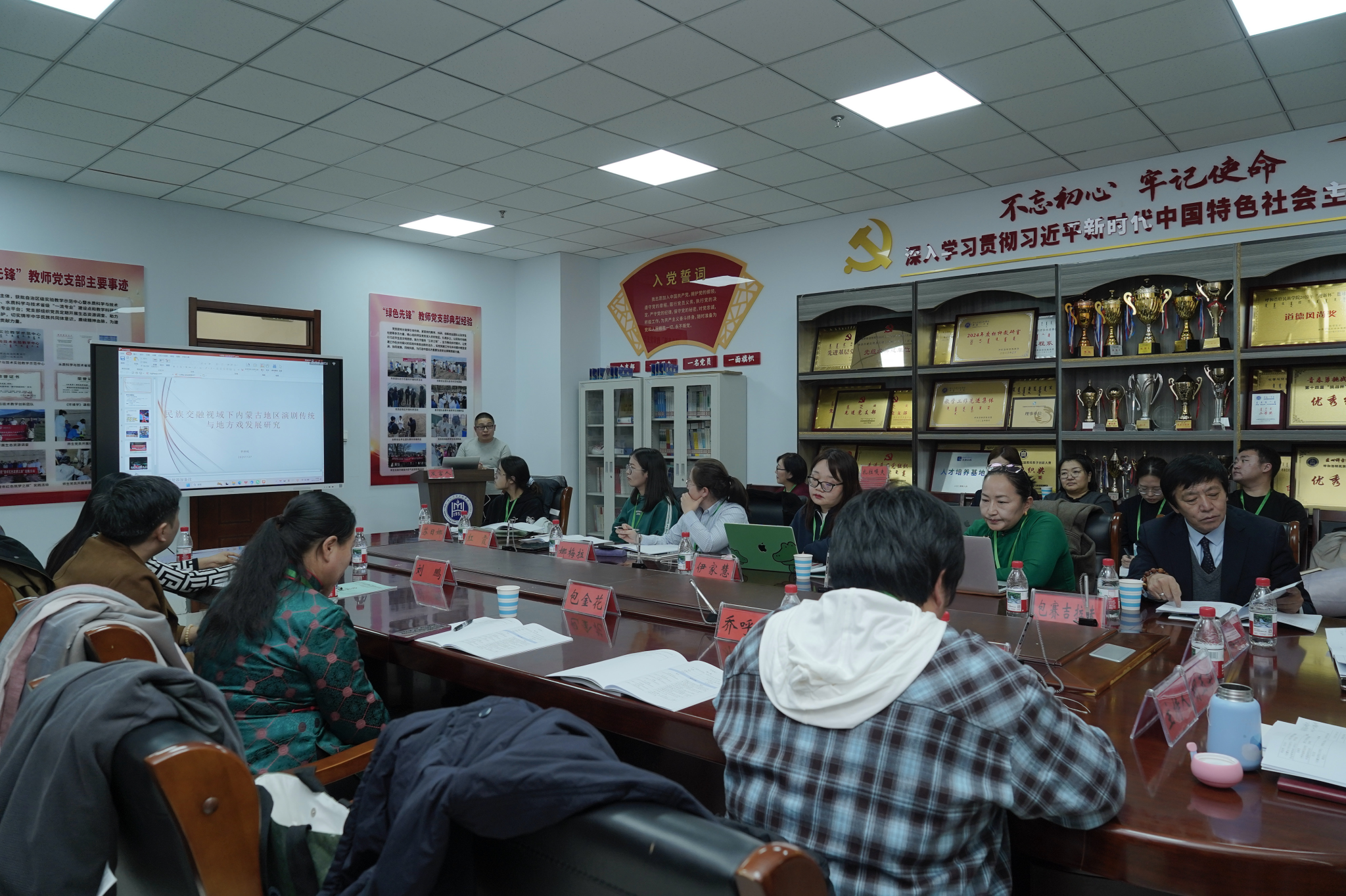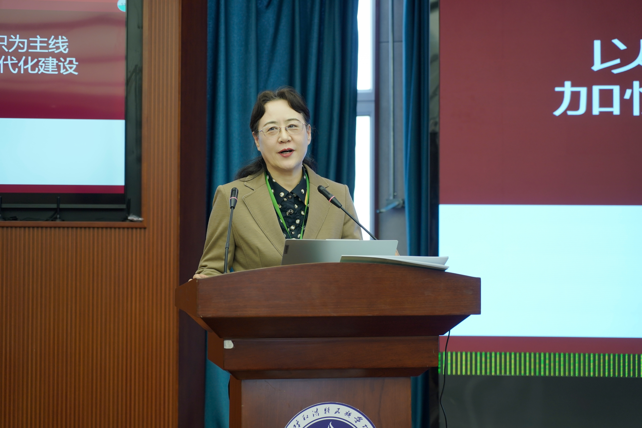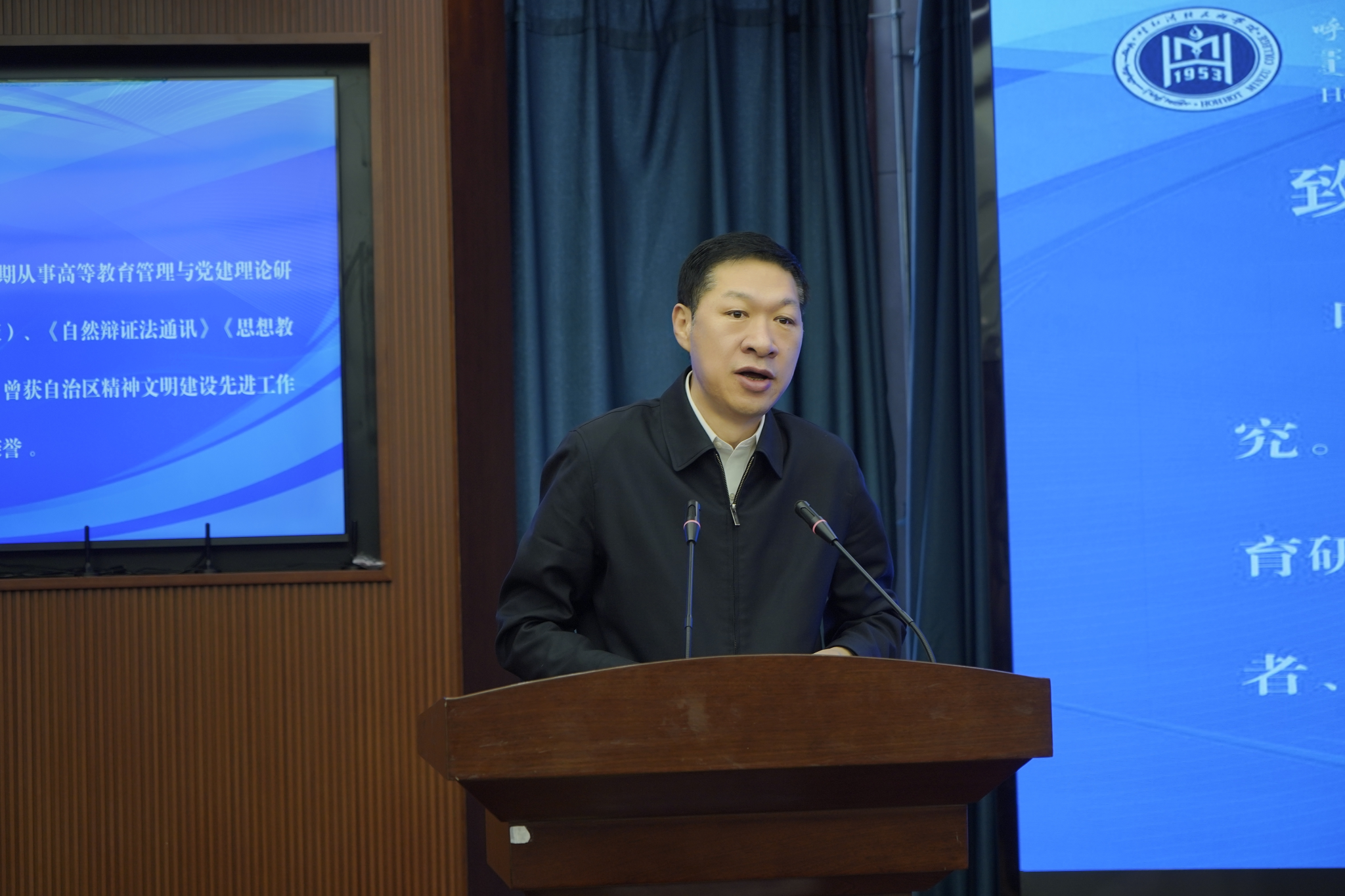 刘九万对与会专家学者及嘉宾表示热烈欢迎,并简要介绍了学校的历史沿革、发展历程以及近年来在贯彻铸牢中华民族共同体意识工作主线方面取得的成果。他表示,党的二十届四中全会提出“铸牢中华民族共同体意识,推进中华民族共同体建设”,为我们工作提供了根本遵循。本次研讨会的举办,是贯彻落实党中央重大决策部署的生动实践。当前科学研究呈现出多学科、多领域、大跨度和深层次的交叉渗透和跨界融合态势,本届研讨会聚焦“文化传承与交融”提交的论文充分体现了多学科交叉融合的研究视野,回应了时代命题。他指出,专家学者的研讨交流必将为自治区繁荣发展社会主义先进文化,建设文化强区增添助力;为植根博大精深的中华文明,用好内蒙古多姿多彩的文化资源,为发展新时代中国特色社会主义文化,提供强大精神文化支撑;为“大力繁荣文化事业,加快发展文化产业,创新推进文化国际传播”作出应有贡献。