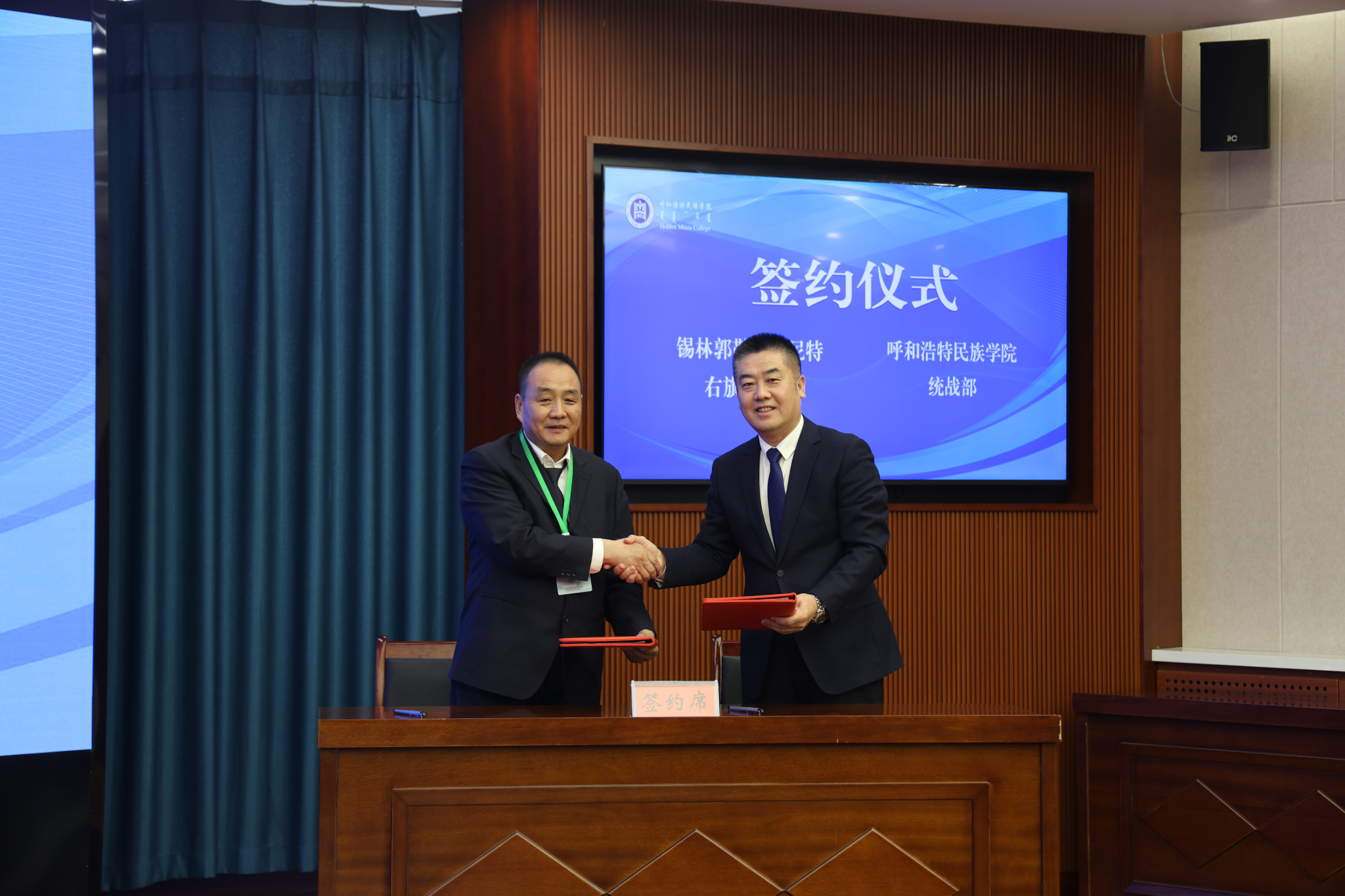 开幕式期间还举行了呼和浩特民族学院统战部与锡林郭勒盟苏尼特右旗统战部签约仪式。