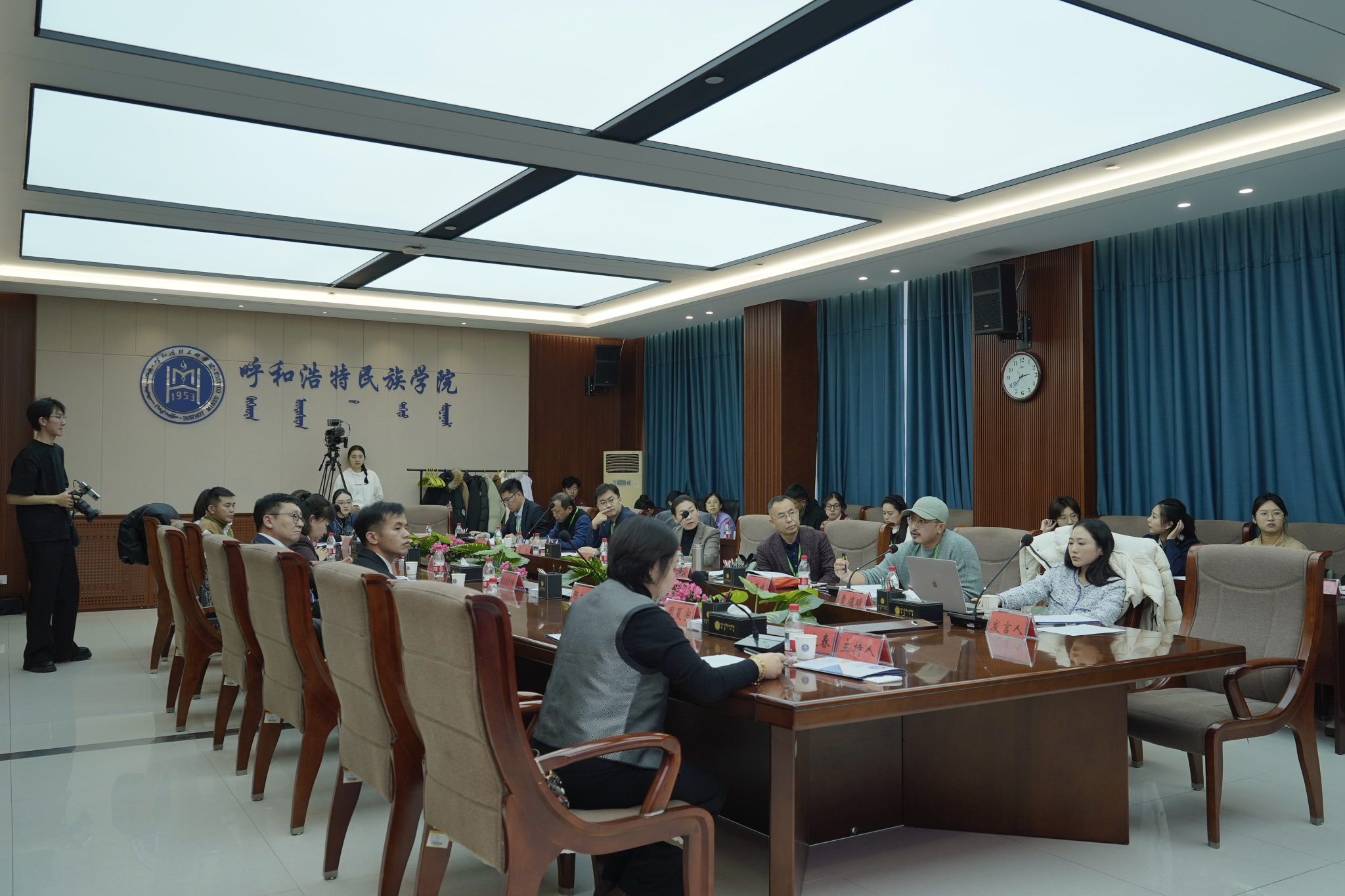 11月29日,由学校铸牢中华民族共同体意识研究基地、蒙古族非物质文化遗产研究基地、北疆文化传播实践中心联合举办的“文化传承与交融:呼和浩特民族学院第四届铸牢中华民族共同体意识研究学术研讨会”顺利召开。来自民族团结杂志社、中国传媒大学、云南大学、中央民族大学、北京外国语大学、青海大学、西北民族大学、西南民族大学、中南民族大学、青海民族大学、辽宁师范大学、塔里木理工大学以及区内各高校、科研机构的100余名专家学者齐聚一堂。内蒙古自治区社会科学界联合会党组书记、主席乌恩奇,内蒙古自治区社会科学院党委委员、副院长乌云格日勒出席研讨会并作主旨发言。内蒙古自治区党委宣传部理论处处长布和、内蒙古自治区民委理论研究处处长张玲玲等嘉宾应邀出席。校党委书记、铸牢中华民族共同体意识研究基地主任刘九万出席会议并致开幕辞。校党委副书记格根哈斯主持开幕式。