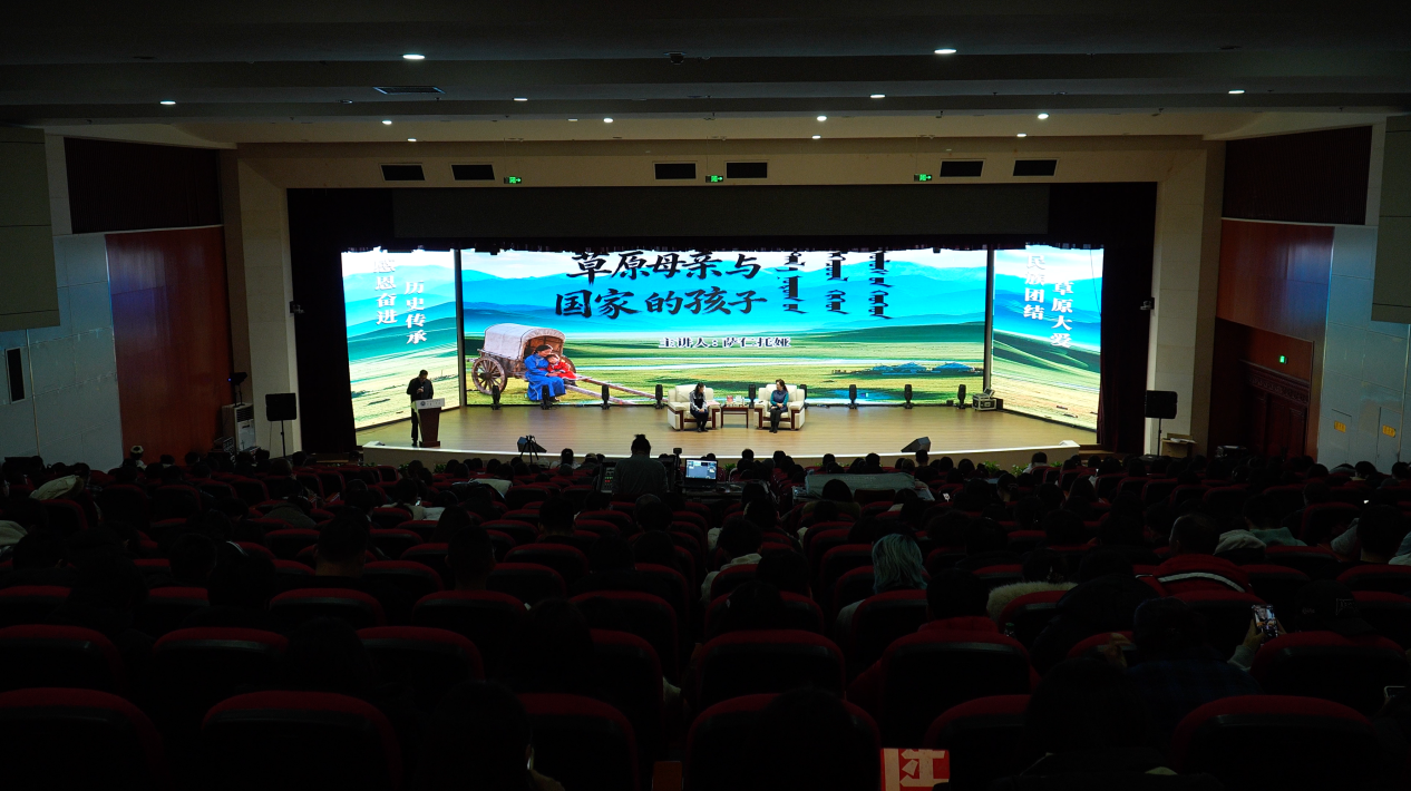 为深入贯彻党的二十届四中全会精神,铸牢中华民族共同体意识,深化校园文化建设,以文化人、以文育人,助力学生厚植家国情怀。11月28日下午,国家一级作家、原内蒙古电影家协会副主席萨仁托娅受邀走进我校,以“草原母亲与国家的孩子”为主题,开启“文润民院”之系列活动(三)读书分享会。校党委委员、宣传部部长张海峰向大家简要介绍了萨仁托娅。读书分享会环节由文学院教师王佳主持。全校师生代表、文学爱好者共600余人现场聆听,共同沉浸于跨越半个世纪的温暖叙事中。