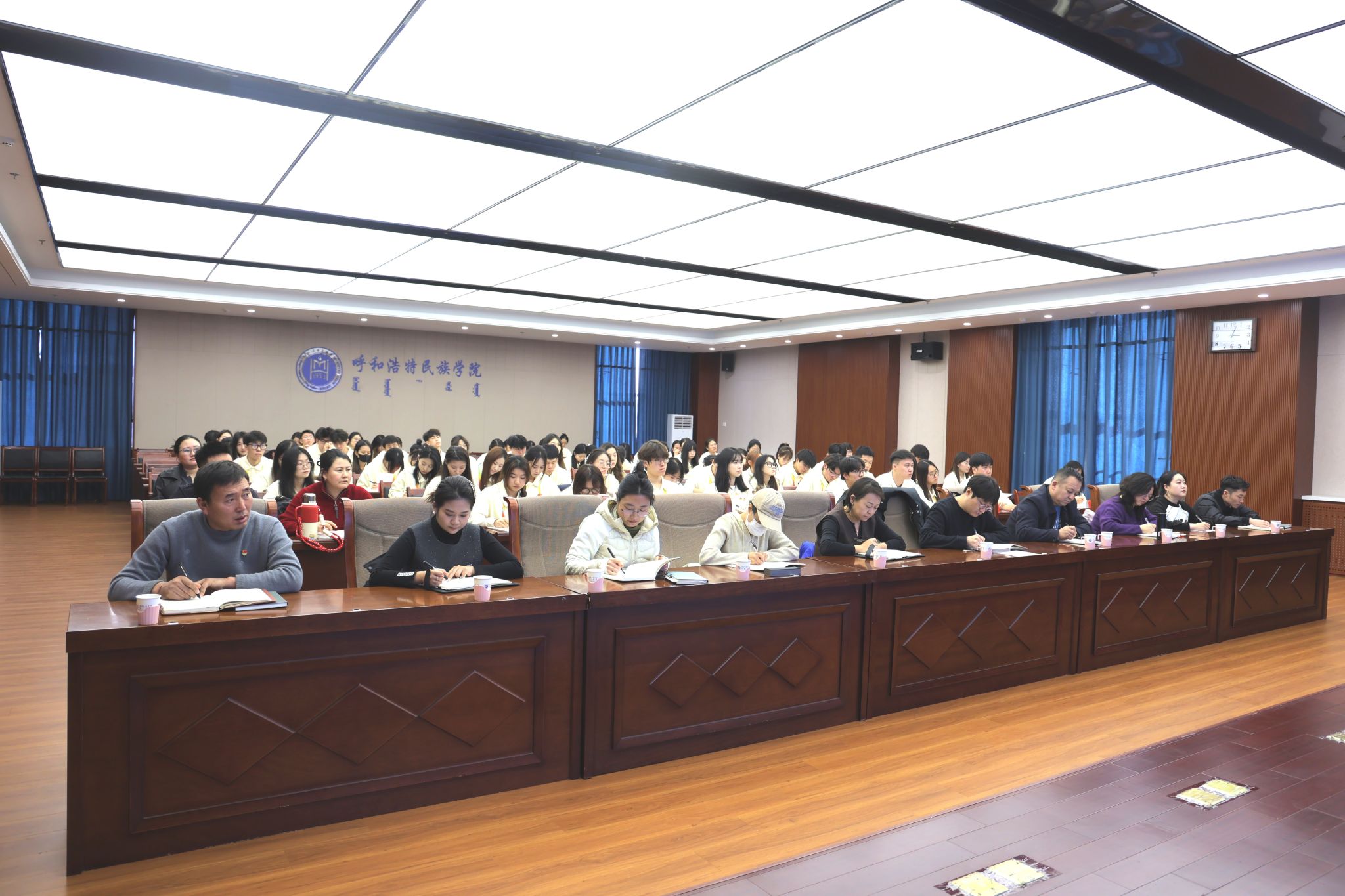 12月5日,校党委副书记格根哈斯以《深学力行党的二十届四中全会精神——筑牢信仰之基 勇担强国使命》为题,为学校第十期“青马工程”培训班学员作党的二十届四中全会精神宣讲。校团委全体人员、各学院团总支书记、青马班学员120余人参加。