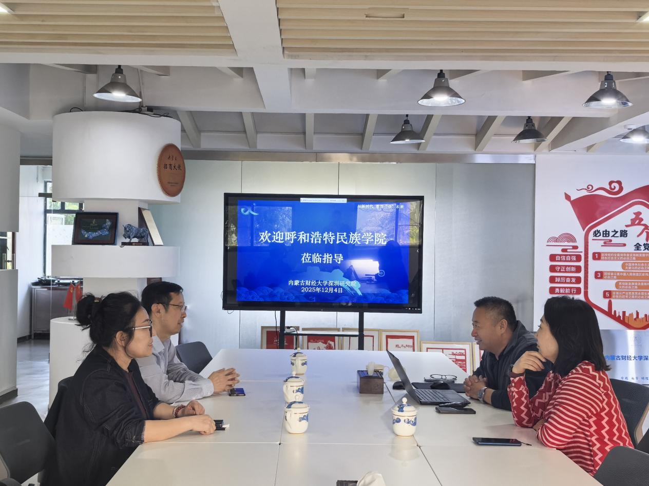 在内蒙古财经大学深圳研究院,调研组与深圳市内蒙古商会会长、内蒙古财经大学广东省校友会会长乔慧及研究院相关负责人开展调研交流活动。双方一致认为,此次调研为校、院、企三方搭建了沟通平台,后续将在人才输送、实习基地建设、产学研项目合作等方面深化联动,共同助力区域人才发展与就业服务。