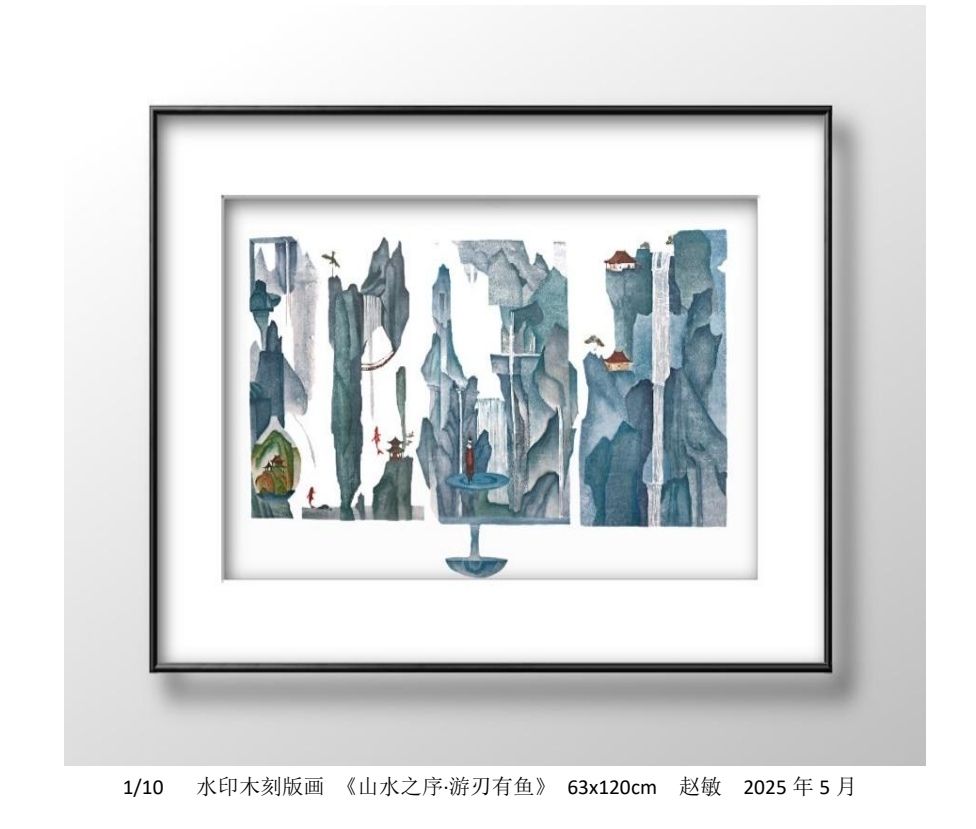 近日,我校美术与设计学院版画专业阿茹娜老师指导的2025届版画专业2班毕业生赵敏,其毕业创作水印木刻版画作品《山水之序·游刃有鱼》成功入选“镌刻时代—首届当代版画双年展”。该展览由中国美术家协会主办,是全国版画领域极具影响力的国家级重要展览。