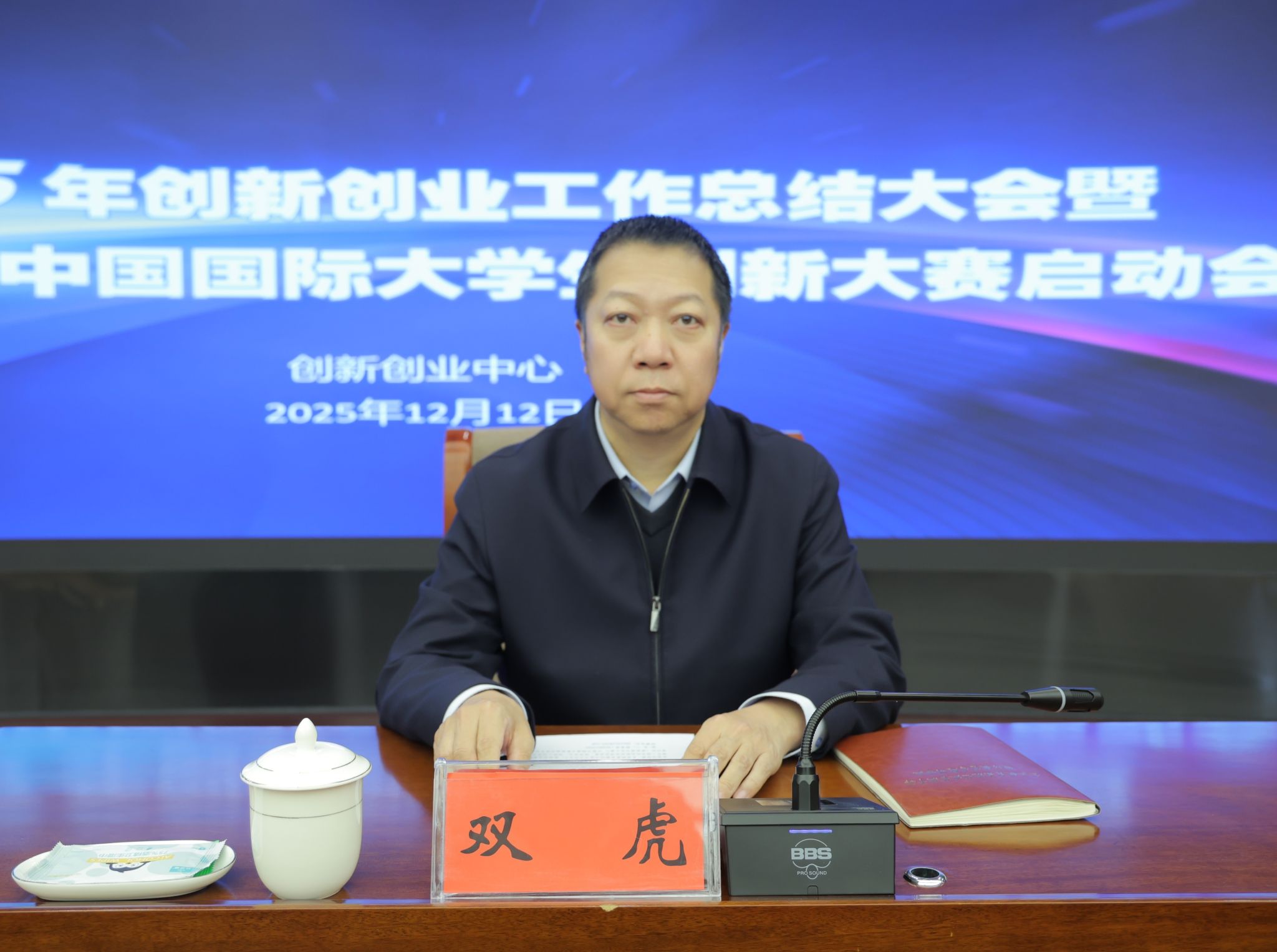 12月12日,我校2025年创新创业工作总结大会暨2026年中国国际大学生创新大赛启动会在综合楼12楼会议室召开。校党委委员、副校长双虎出席会议并讲话。