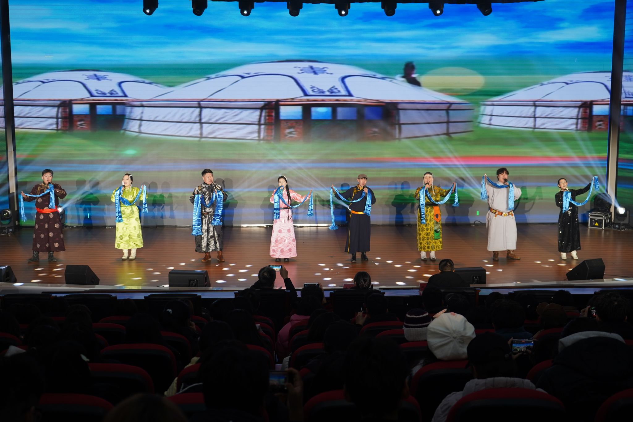 12月23日晚,“青春逢盛世,奋斗正当时”文艺晚会在学校铸牢中华民族共同体意识教育馆二楼报告厅隆重举行。整场晚会主题鲜明、编排精美,集中展现了我校美育实践教育阶段性成果,进一步营造格调高雅、青春向上的校园文化氛围。校党委委员、纪委书记、监察专员王冬梅,党委委员、副校长额尔敦布和,党委委员、副校长双虎出席晚会,学校各职能部门负责人、各学院党团总支书记代表及600余名师生共同观看文艺演出。