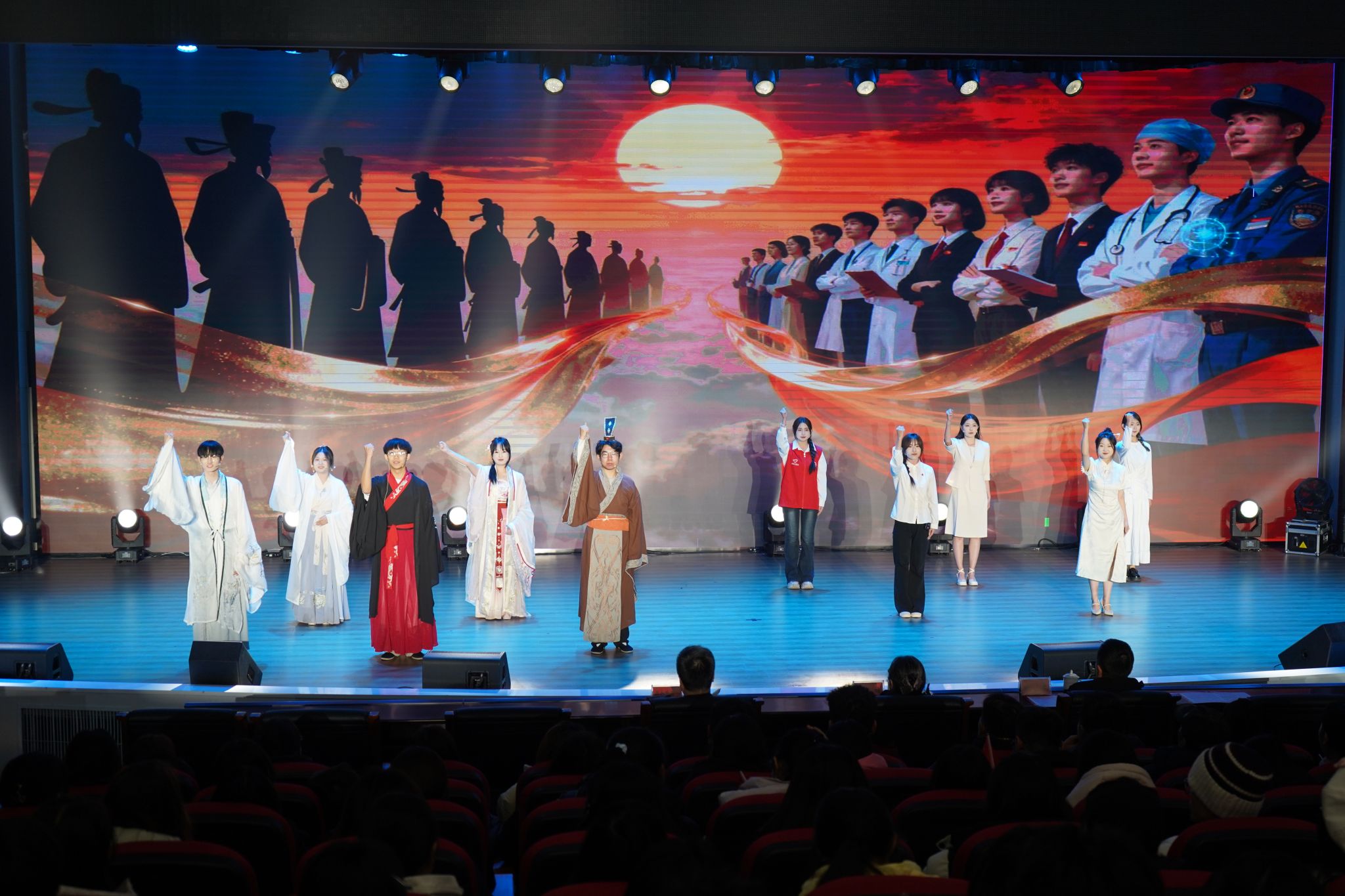 本场晚会不仅激发了在场师生的爱国热情与民族自豪感,更是对新时代呼民院青年精神风貌的深刻诠释与生动展现;既是一份送给2025级学生的迎新厚礼,更是一堂主题鲜明、内涵丰富、形式生动的“艺术思政课”,将时代主题与青年学子昂扬奋进的精神紧密结合,把思政教育与文体活动深度融合,引导广大青年学子以实际行动践行“强国有我”的青春誓言。