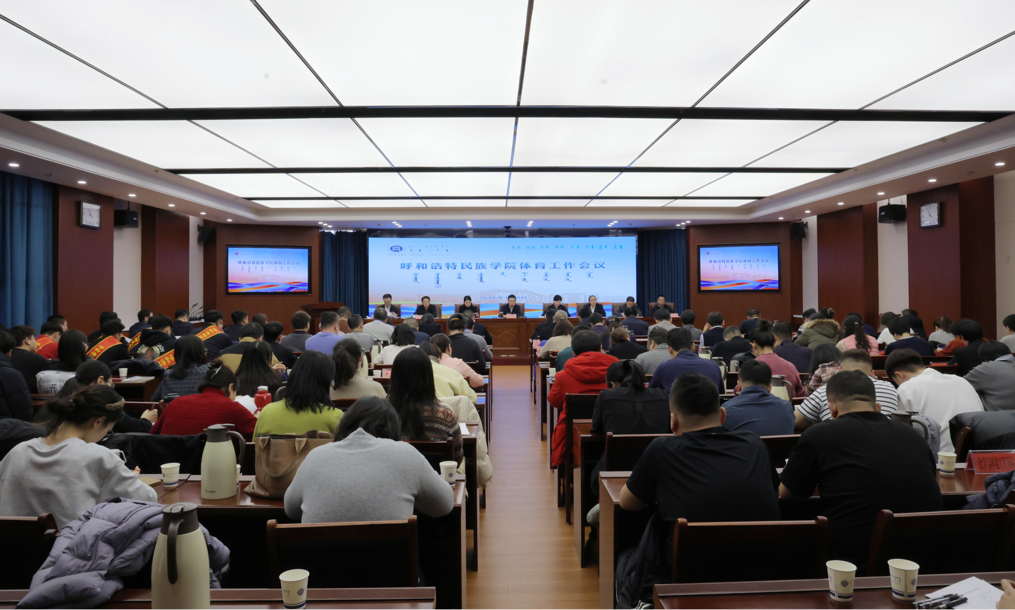 为深入学习贯彻习近平总书记关于体育工作的重要论述,贯彻落实教育强国、体育强国战略部署,全面总结我校体育工作经验、分析问题、查找不足,谋划下一阶段体育工作重点任务,1月8日下午,学校召开体育工作会议。校党委书记刘九万出席会议,校党委副书记、校长王敏出席会议并作总结讲话。全体校领导出席。会议由党委委员、副校长额尔敦布和主持。