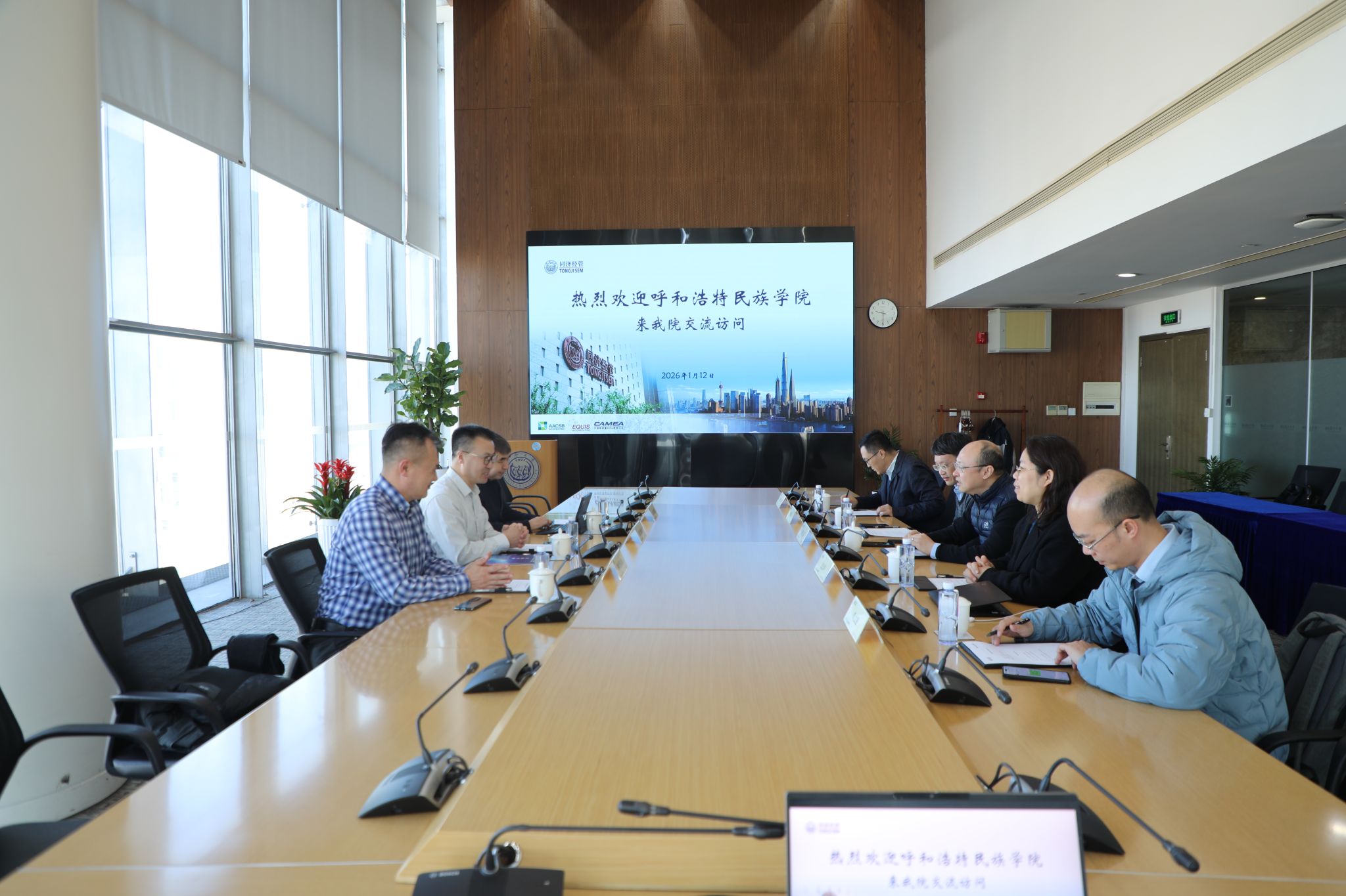 在同济大学,额尔敦布和一行与该校经济与管理学院、计算机科学与技术学院联合开展座谈交流,经济与管理学院院长谢恩、周中允副教授,计算机科学与技术学院副院长卫志华、院长助理李文根、院长助理朱宏明等专家学者共同参与交流。座谈会上,双方围绕专业硕士学位点建设、合作交流与帮扶等方面深入研讨,同时就工程教育认证理念、人才培养质量标准等关键议题分享实践经验。