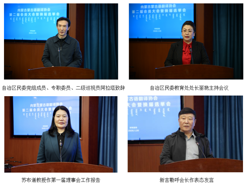 新吉勒呼会长在表态发言中表示,新一届理事会将秉持协会宗旨,锚定蒙古语文翻译事业高质量发展目标,凝聚全体会员智慧力量,聚焦学术研究、行业服务、人才培育等方面持续发力,让蒙古语文翻译成为传递时代声音、促进文化交融的坚实桥梁,为铸牢中华民族共同体意识作出新贡献。