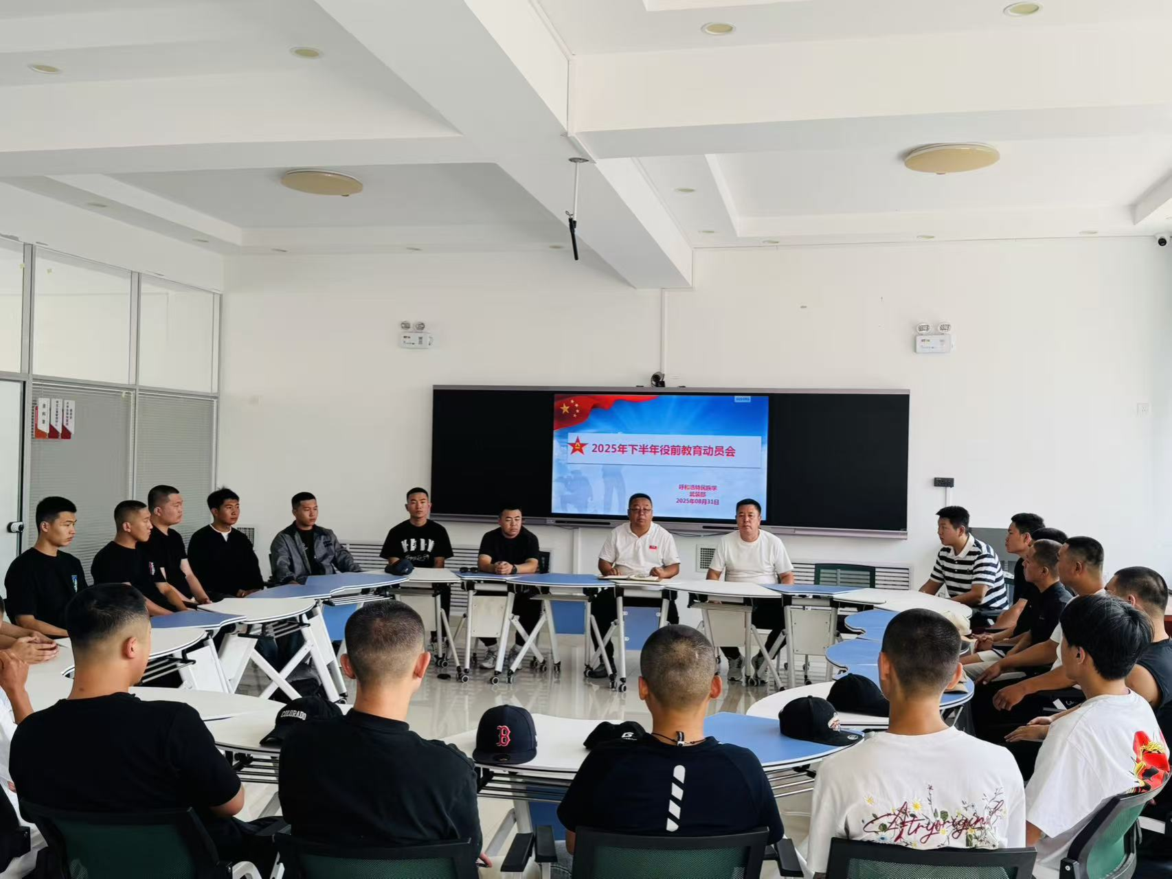 为进一步加强预征青年国防教育,树立参军报国的坚定意志,帮助学生更好地适应军营生活,8月31日,学生工作部(武装部)在创业楼203活动室,组织我校2025年下半年双合格的26名优秀学生召开了役前教育动员会。