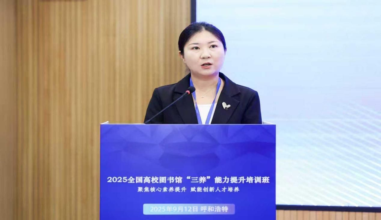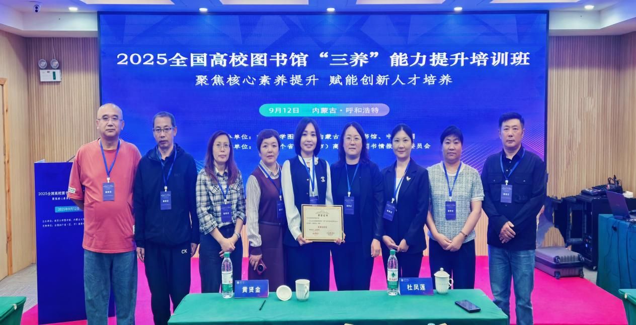 9月12日,由南京大学图书馆、内蒙古大学图书馆、中国知网共同主办的2025全国高校图书馆“三养”能力提升培训班开班仪式在呼和浩特成功举行。来自内蒙古、江苏、山东、陕西、河北等24所高校图书馆的150余位代表参加线下会议,全国近3000人观看线上直播。我校图书馆全体教职工通过线上、线下形式参加了开班仪式。
