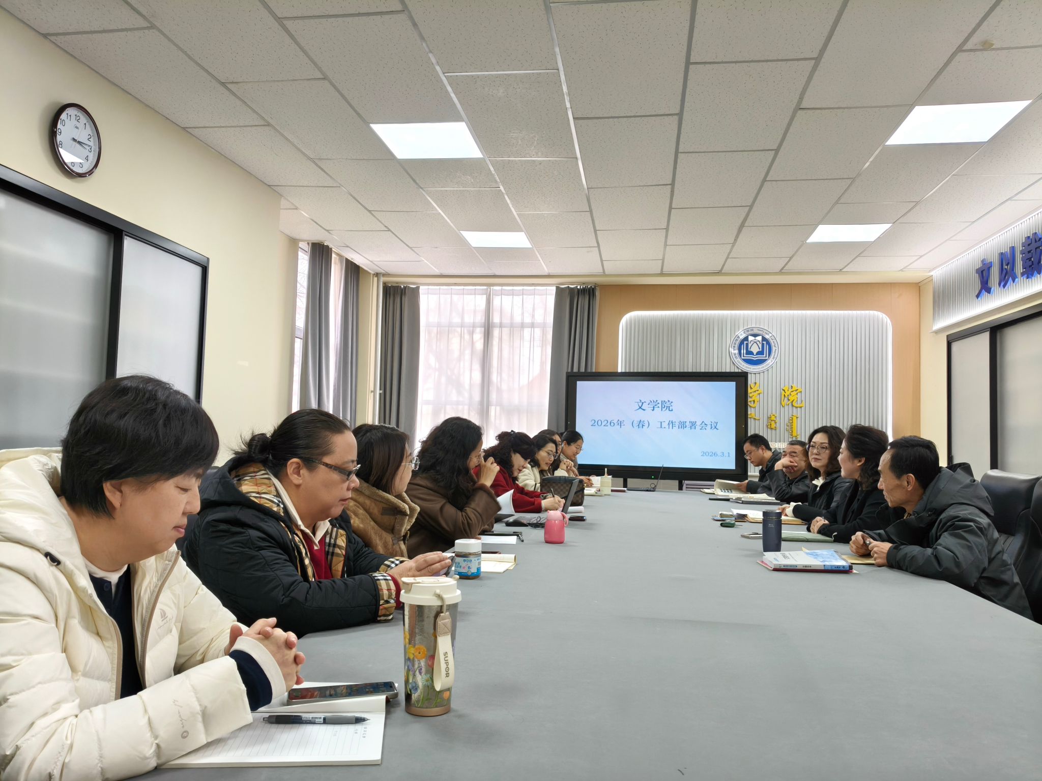 3月1日,文学院召开2026年春季学期工作部署会,学院全体教师参会。