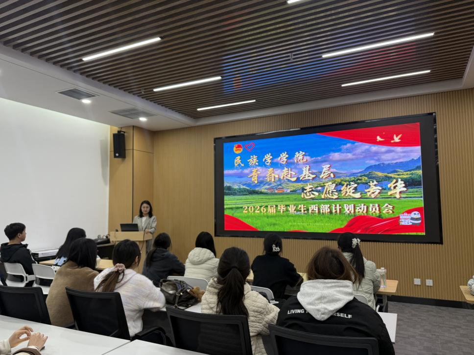 会上,主要围绕西部计划政策要点进行系统解读,重点介绍招募对象、报名流程、服务岗位类别、政策保障措施以及升学就业相关优惠政策。结合民族学专业特点,引导同学们将专业所学与基层治理、乡村振兴、民族地区发展需求紧密结合,鼓励大家在服务基层的实践中锤炼本领、实现价值。