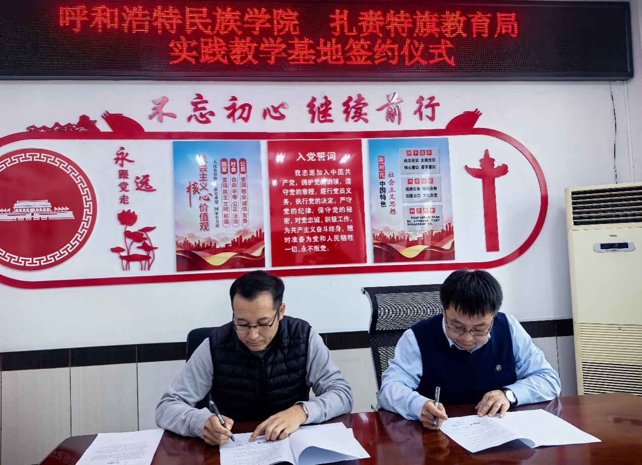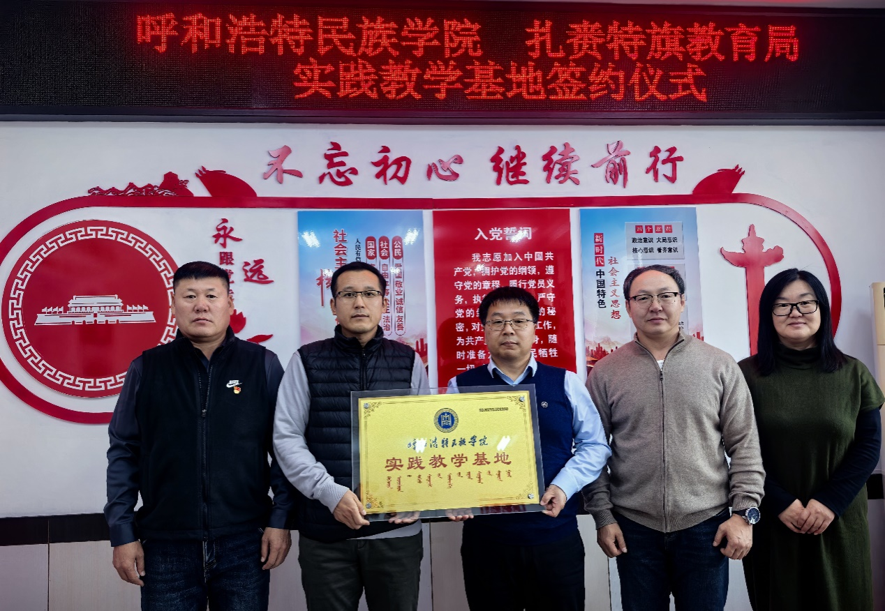 11月24日,我校外国语学院与兴安盟扎赉特旗教育局在扎赉特旗共同举行“实践教学基地”签约揭牌仪式。外国语学院院长秦红喜、党政办公室主任胡日查毕力格,扎赉特旗教育局副局长孙胜利、朱满达及双方相关负责人出席活动。