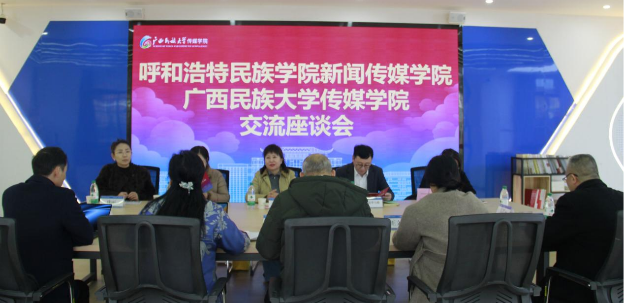 1月24日,我校新闻传媒学院党总支书记苏伦高娃、院长额尔敦毕力格率队赴广西南宁开展专业建设交流与访企拓岗活动,先后走访广西民族大学传媒学院、广西新影响禾集文化集团有限公司,围绕学科专业建设与人才培养、AI技术赋能传媒内容生产等议题展开深入交流。