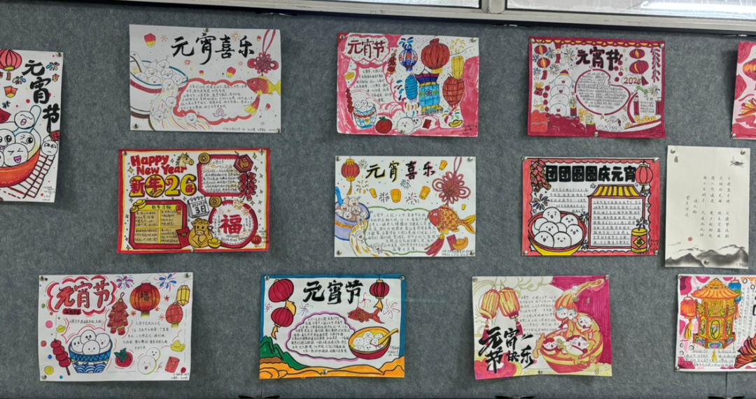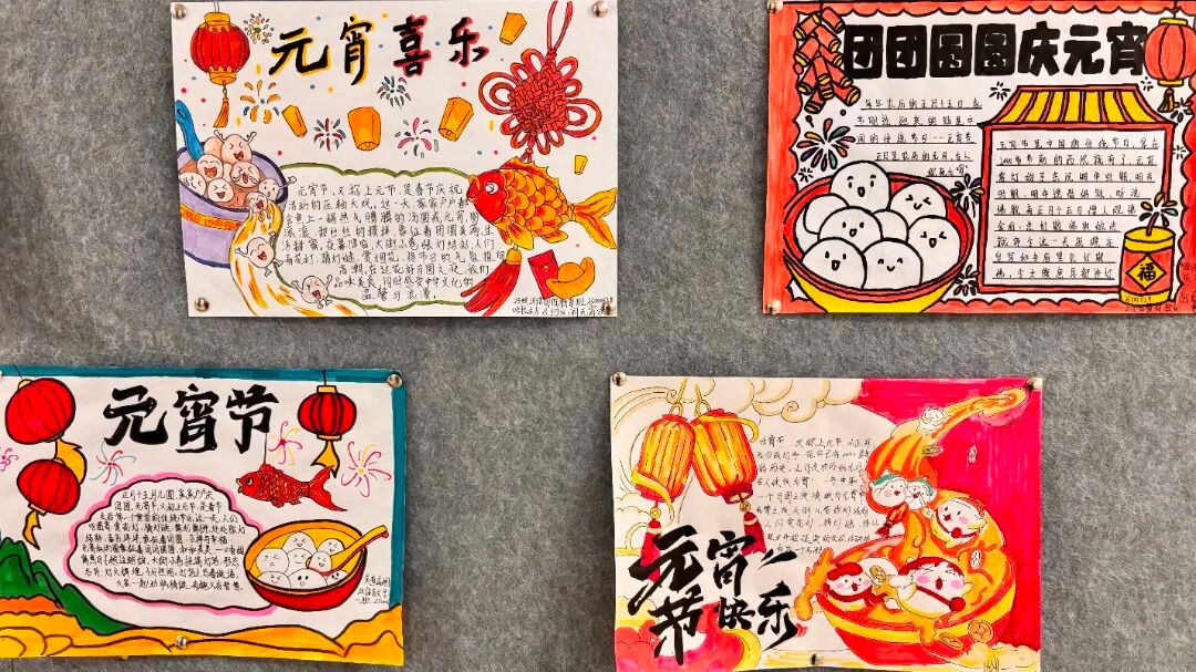 活动开展 期间,同学们围绕元宵节起源、民俗风情、经典诗词、团圆寓意等主题精心构思,一笔一画勾勒花灯、汤圆、灯谜等节日元素,搭配工整书写与精巧排版,将元宵文化与青春创意融为一体。作品通过展板集中展示,一幅幅图文并茂的手抄报充分展现了文学院学子良好的审美素养与文化底蕴。