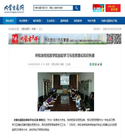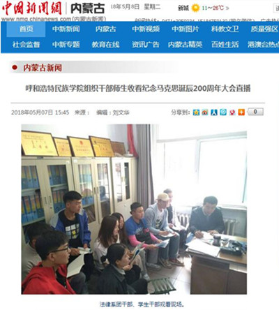 5月4日上午,我校第一时间组织广大干部师生收看纪念马克思200周年大会,集中学习了习近平总书记在纪念马克思诞辰200周年大会的讲话。习近平总书记的讲话在广大干部师生中引起了强烈反响,受到媒体的广泛关注。 中国新闻网、内蒙古晨网等媒体对我校开展广大干部师生收看纪念马克思诞辰200周年大会活动进行了报道。